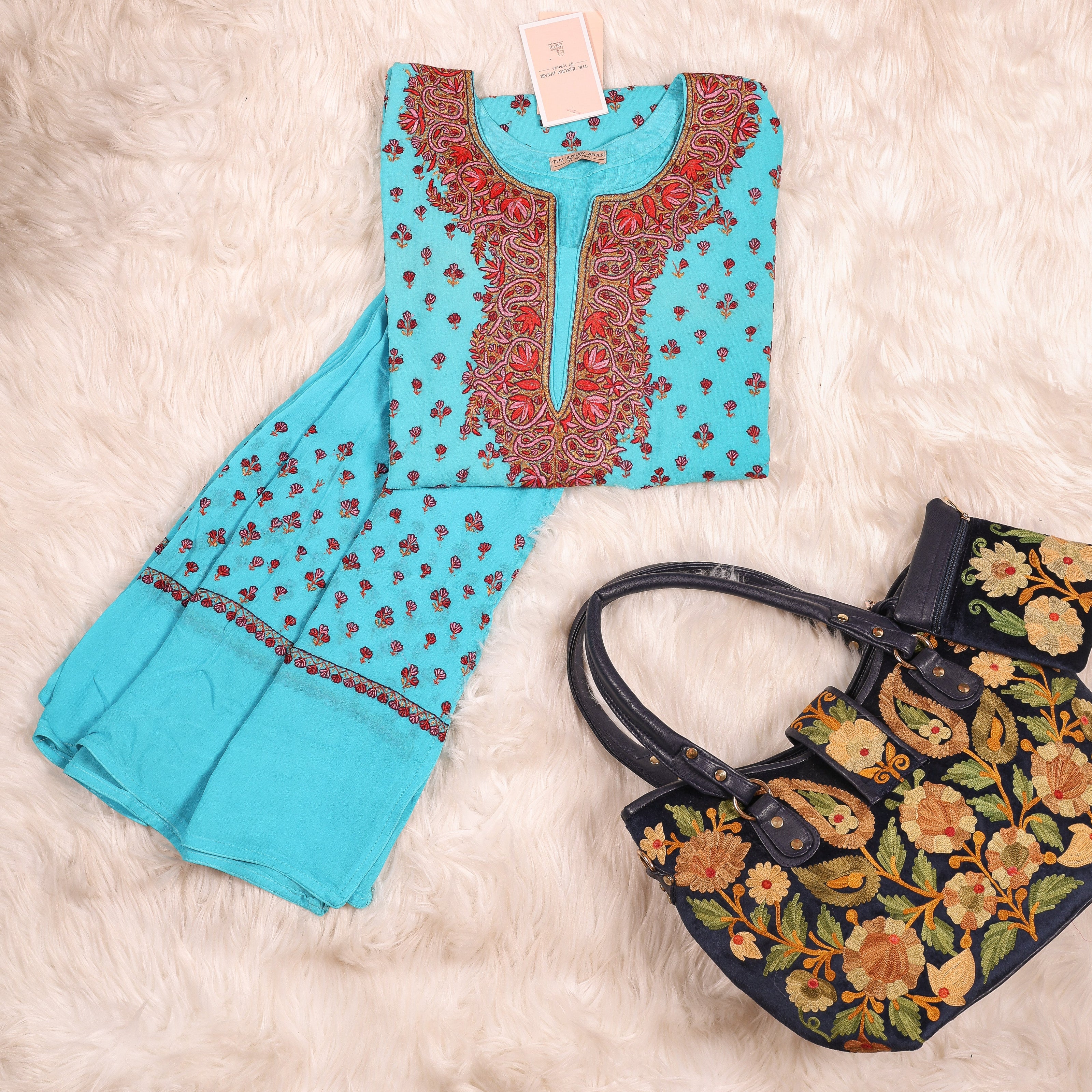 See NowThe Turquoise Pure Crepe Fine Pashmina Kadhai is a masterpiece. From the richness of the fabric to the hand-finished embroidery, everything about it screams exclusivity. I had it tailored for a family function and it instantly became the showstopper outfit of the evening.