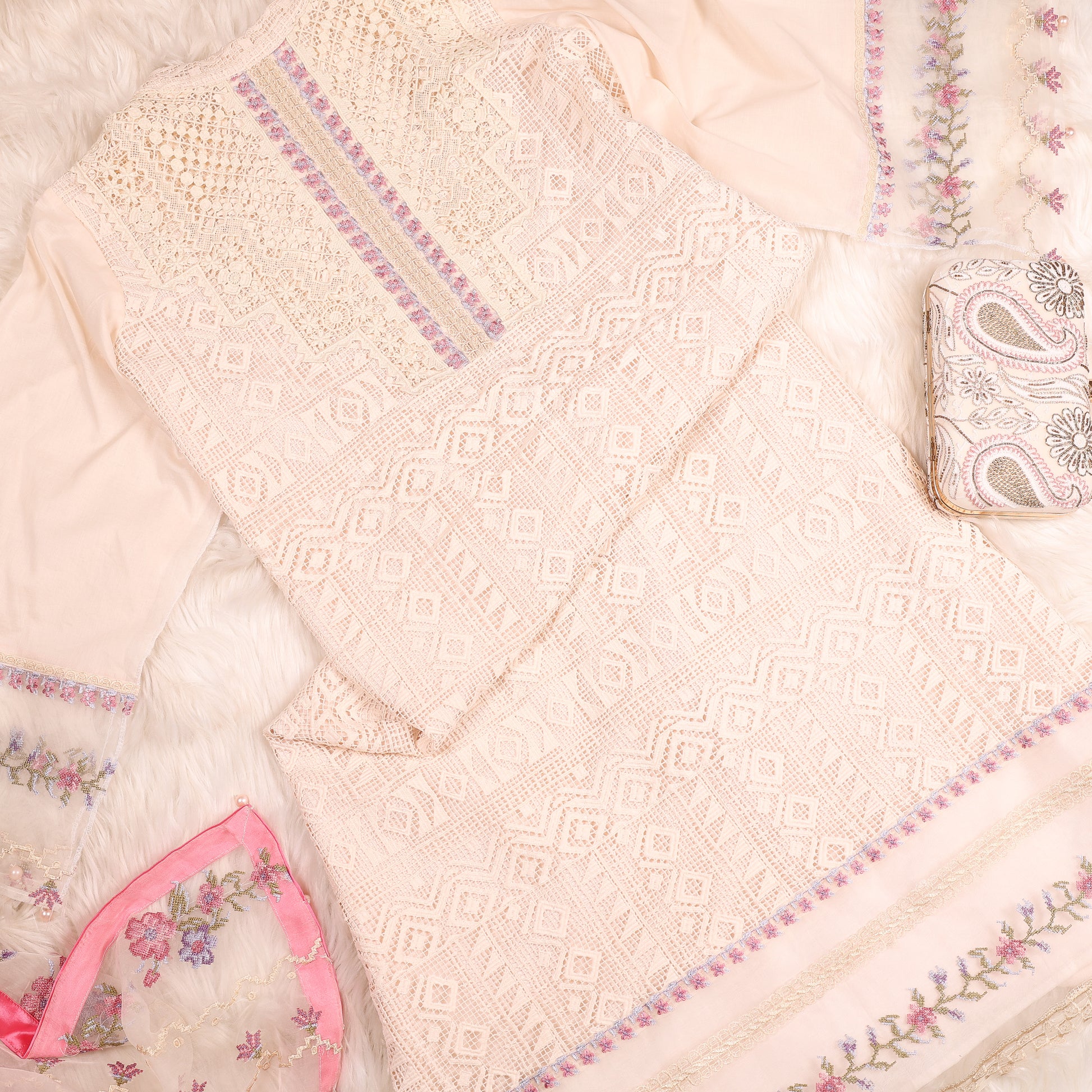Ivory & Pink Pakistani Suit