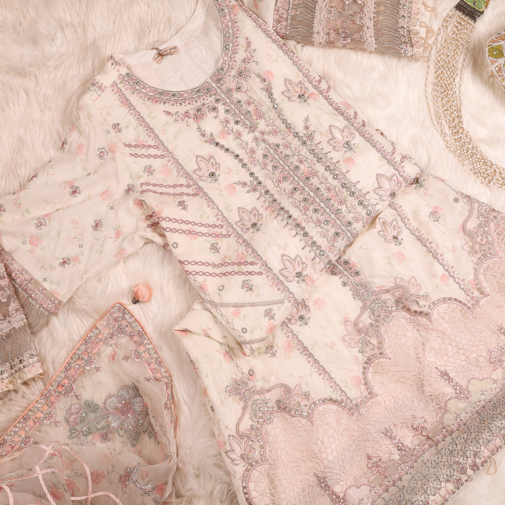 Step into effortless elegance with this Pakistani White & Pink suit, crafted from high-quality fabrics for comfort and style. The delicate embroidery and soft color palette create a timeless, graceful look.