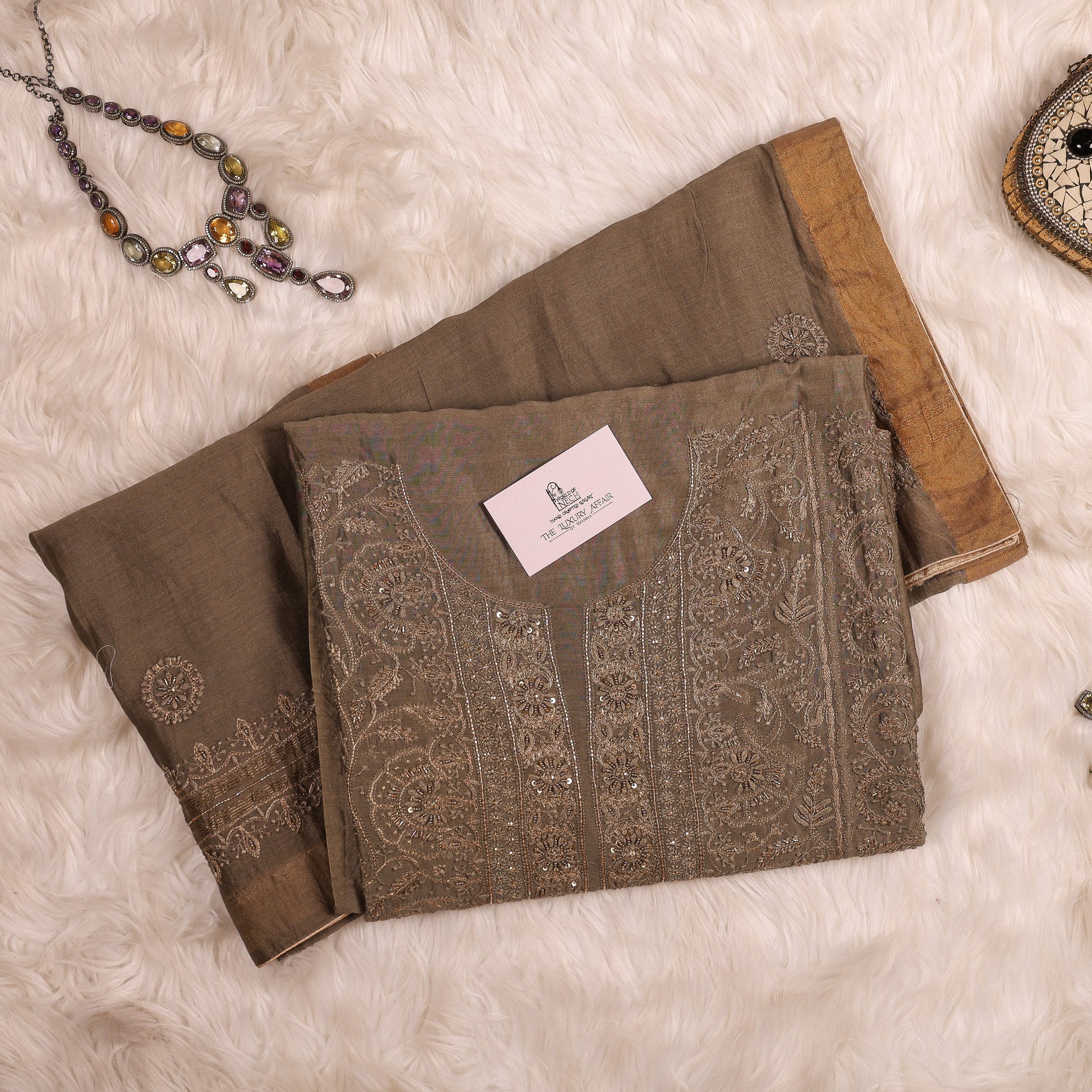 Perfect for weddings, festive gatherings, or cultural occasions, this suit reflects a fusion of heritage craftsmanship and modern sophistication. The delicate chikankari detailing makes it stand out as a statement of refined elegance.